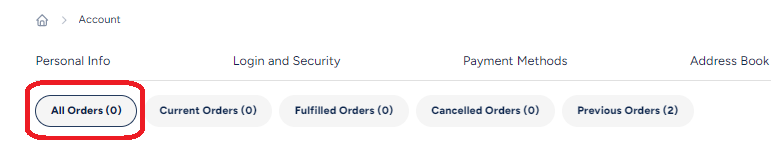 Online orders from our previous website versions will appear under Previous Orders: