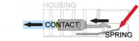 This is a side-view of the connector interior - press the spring under the contact down, and pull the cable in the direction of the arrows.