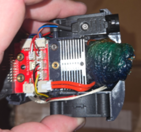 You've returned to your unattended 3D printer to find that it appears to have leaked filament from the nozzle and made a filament blob engulfing the hot end.