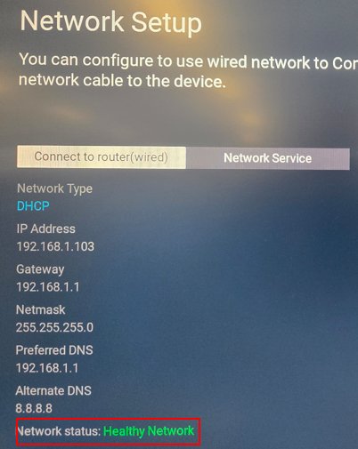 The Network Setup screen appears. It needs to say Healthy Network.