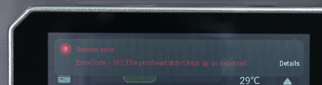 Centauri Carbon printer TL4980 has ErrorCode : 103 The printhead didn't heat up as expected:
