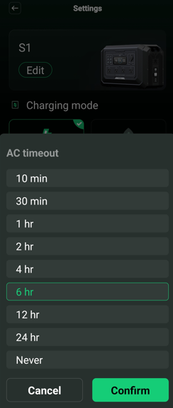 You can change the default timeout for the standby and AC outputs in the App under Settings.
