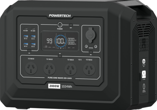 The MB4102, MB4104, MB4106, and MB4108 are high-capacity portable power stations with Lithium batteries and mains/DC/USB power outputs. They can be charged from DC sources such as solar panels or vehicles, or faster from mains.
